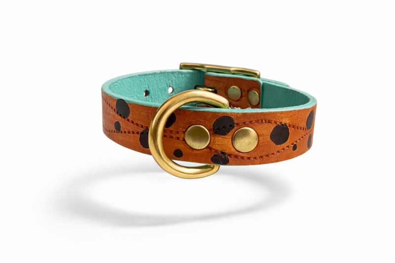 Stylische Lederhundehalsband mit Polkadots – Türkis & Trendy