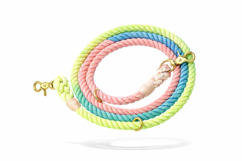 „Diese trendige Hundeleine Coachella in fluoreszierenden Farben ist 2 Meter lang und verstellbar, perfekt für einen trendigen und auffälligen Look bei Spaziergängen.“